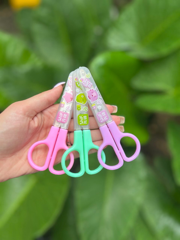 قیچی کوچک رنگی ضامندار، ایمن و خوشدست برای استفاده روزمره و کاردستی. طراحی فانتزی با تیغه تیز و قفل ضامن برای حمل آسان در کیف یا جامدادی.