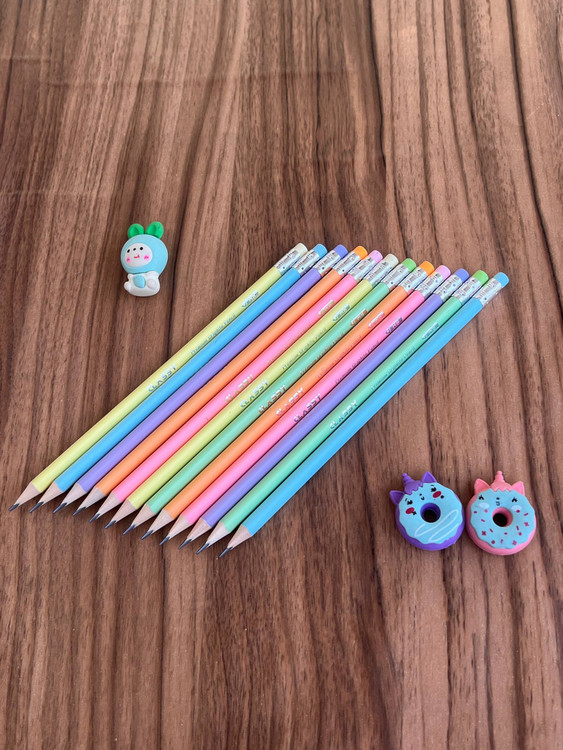 این مدادها با بدنهی رنگی و طرحهای جذاب فانتزی، نوشتن رو لذتبخشتر میکنن. پاککن نرم و باکیفیت سر مداد، کار رو راحت کرده تا بدون نیاز به پاککن جدا، نوشتههات رو تمیز و مرتب نگه داری 💕